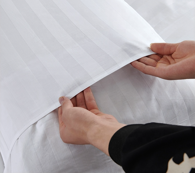 コットン サテンストライプ ベッドシーツ タイタンホテル クイーン